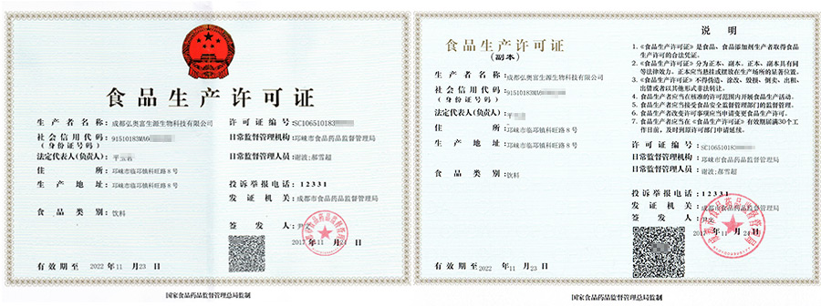 成都弘奥富生源生物科技有限公司,经营范围碳酸饮料研发和制造;瓶(桶)装饮用水研发和制造;果蔬汁及其饮料制造;植物蛋白饮料制造;固体饮料制造;茶饮料;其他饮料制造;保健食品研发和制造(依法须经批准的项目,经相关部门批准后方可开展经营活动)。